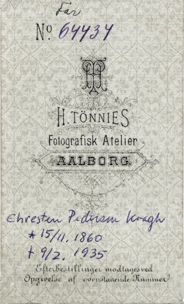 Chresten Pedersen Kragh #7. Foto: H. Tønnies, Aalborg, nr. 64434, 29. OKT 1883.